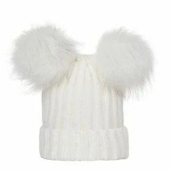 Unbranded Moda Double Hairball Solid Color Baby Pompom Cap Manter Quente Ao Ar Livre Crianças S Chapéu De Inverno Gorro Chapéu
