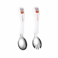 Unbranded Kids Cutlery Set, Baby Spoon Fork Baby Tableware Set Curved Handle Training Spoons Forks For Baby Kids