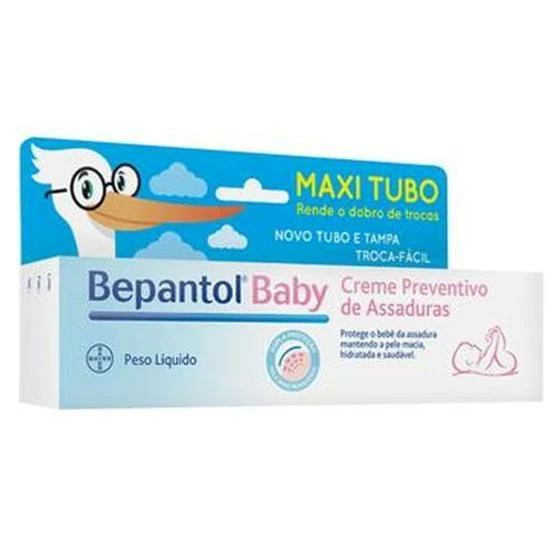Bepantol Baby Maxi Turbo de Bayer é um creme anti-assaduras que rende o dobro de trocas e possui embalagem com tampa troca-fácil, que facilita na hora da troca de fralda, pois não é de rosquear, protege e hidrata a pele do bebê, reforçando a sua defesa natural.Indicação:• Todos os Tipos de pele de bebês;Pois Bepantol Baby Maxi Turbo forma uma camada transparente, que permite o acompanhamento da pele do bebê a cada troca de fralda. Além disso, possui consistência suave, sendo fácil de espalhar e remover.Sua fórmula com vitamina B5, óleo de amêndoas e lanolina, ajuda a fortalecer a pele de dentro para fora, pois é diferenciada por não conter corantes, conservantes e perfume, ideal para a delicada pele do bebê.Bepantol Baby Maxi Turbo a dupla proteção que vai além do que você vê.Benefícios:• Proteção da pele do bebê• Hidratação da pele do bebê• Reforça sua defesa natural• Consistência suave• Não contém corantes• Não contém perfumes• Não contém conservantes• Fácil de espalhar e remover• Ajuda a fortalecer a pele de dentro para fora• Rende o dobro• Dupla proteção• Barreira protetora