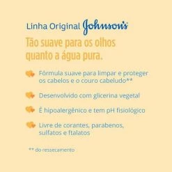Shampoo infantil para todos os tipos de cabelos. Johnson’s Baby Shampoo faz uma limpeza suave que não agride a pele sensível do bebê.