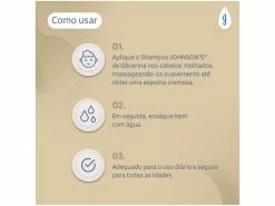 Com fórmula ainda mais suave para dar o cuidado que o cabelo do seu bebê precisa, o Shampoo Johnson’s Baby Gold limpa suavemente e protege os cabelos e o couro cabeludo do bebê. É desenvolvido com glicerina vegetal, tem ph fisiológico, é hipoalergênico e livre de corantes, parabenos, sulfatos e ftalatos. Deve ser aplicado por um adulto ou sob sua supervisão, massageando os cabelos molhados do bebê. Não usar se o couro cabeludo estiver ferido ou irritado.