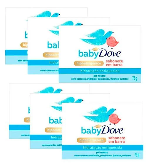 Kit Sabonete Em Barra Baby Dove Hidratação Enriquecida 75g – 6 Unidades