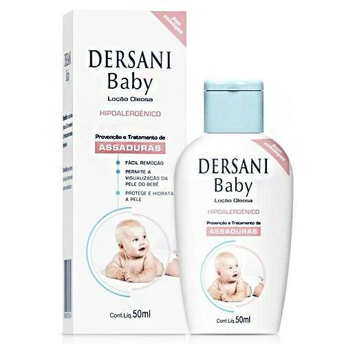 Dersani Baby é uma loção oleosa à base de A.G.E com vitaminas A e E, dermatologicamente testada e hipoalergênica.