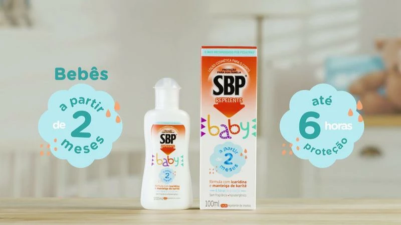 SBP Baby foi desenvolvido especialmente para proteger a pele delicada dos bebês a partir de 2 meses. É um repelente em loção, com textura não oleosa e sem fragrância. Eficaz contra mosquitos, insetos e muriçocas, SBP Baby protege seu bebê por até 6 horas.