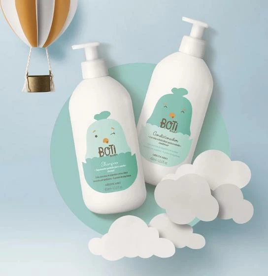 E para completar o banho relaxante, o Condicionador Boti Baby deixa o delicado cabelo do bebê macio e brilhante. É um banho de carinho para tudo alegrar, o condicionador é livre de corantes, parabenos e álcool. A sua formulação cuida com carinho dos fios delicados do bebê facilitando o desembarace.