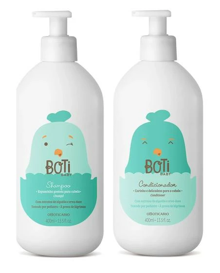 Kit shampoo e condicionador para bebê boti baby 400ml cada o boticário