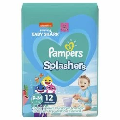 Kit 24 Fraldas Pampers para Água Splashers Baby Shark P-M