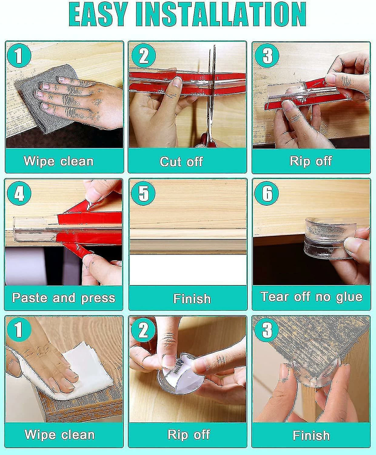 Wide range of applications – Safety edge corner protectors are suitable for most furniture. Such as tables, cabinets, drawers, fireplaces, etc. The clear edge protector blends in with your furniture, maintaining its original look.