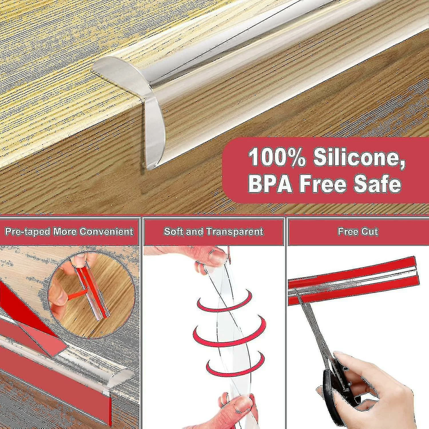 SAFE MATERIAL – Our edge protectors are made of soft and transparent PVC, which is eco-friendly, non-toxic and odorless. Can be repeatedly squeezed or pulled, not easily deformed or torn.