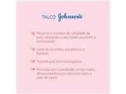 Cuidar do bebê é uma especialidade das mães, para ajudar a Johnsosn’s trouxe o talco infantil Pura ProteçãoFoi desenvolvido para deixar a pele macia e perfumada com a fragrância que é sinônimo de “cheirinho de bebê”.O talco é um importante aliado das mães principalmente na briga contra as assaduras em crianças recém-nascidas.É suave, absorve o excesso de umidade e deixa o bebê sequinho. Livre de parabenos, corantes e ftalatos.Sua embalagem contém 200g.