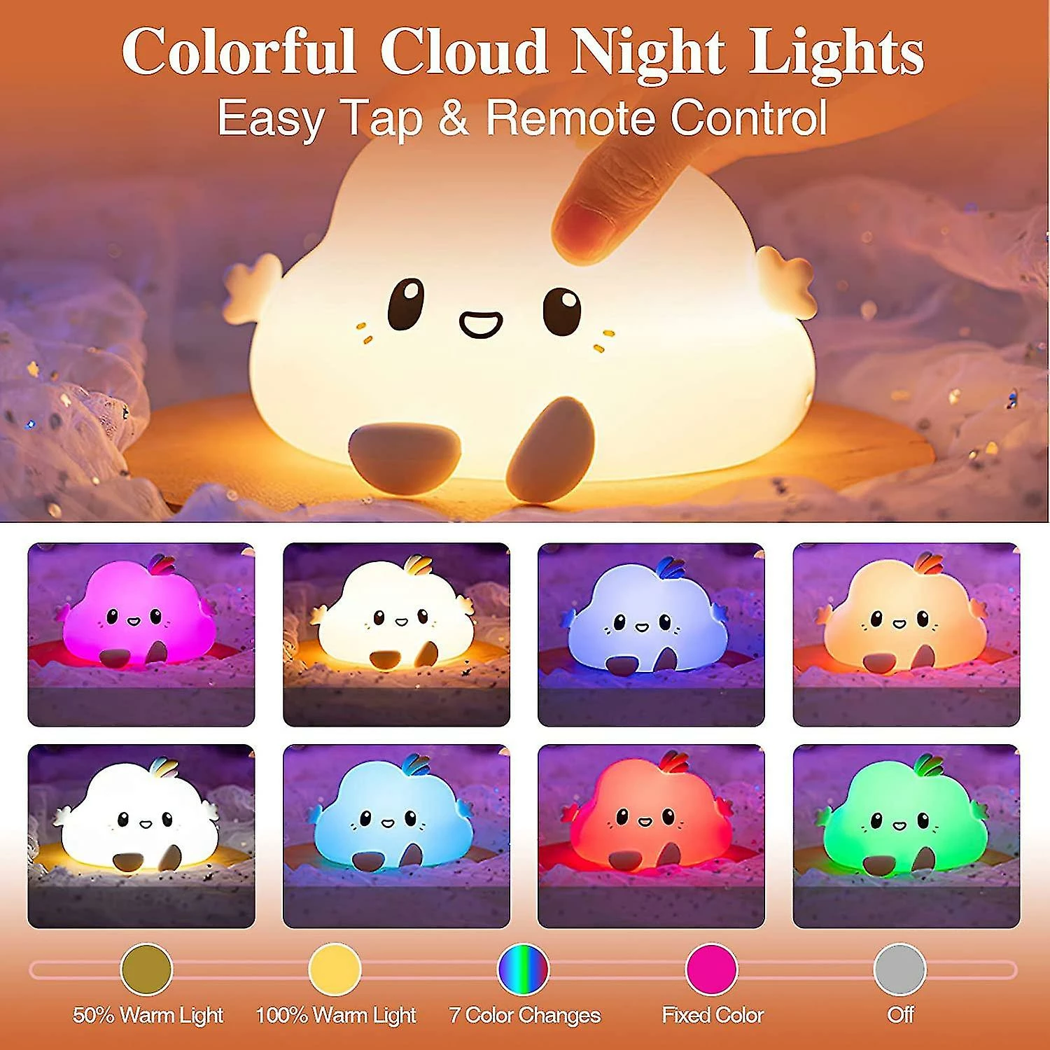 Our baby night light is more than just a night light, it’s is a service of adorable smiles, you and your child will love. The extra cute cloud design spruces up any little girl’s or boy’s room in an instant, with the soft silicone design making it an adorable companion for you. And you have the freedom to place it wherever you want. No more need to be limited by the power outlet. Just charge it using the supplied USB cable and keep it on the bedside table, on a bookcase or to transport.