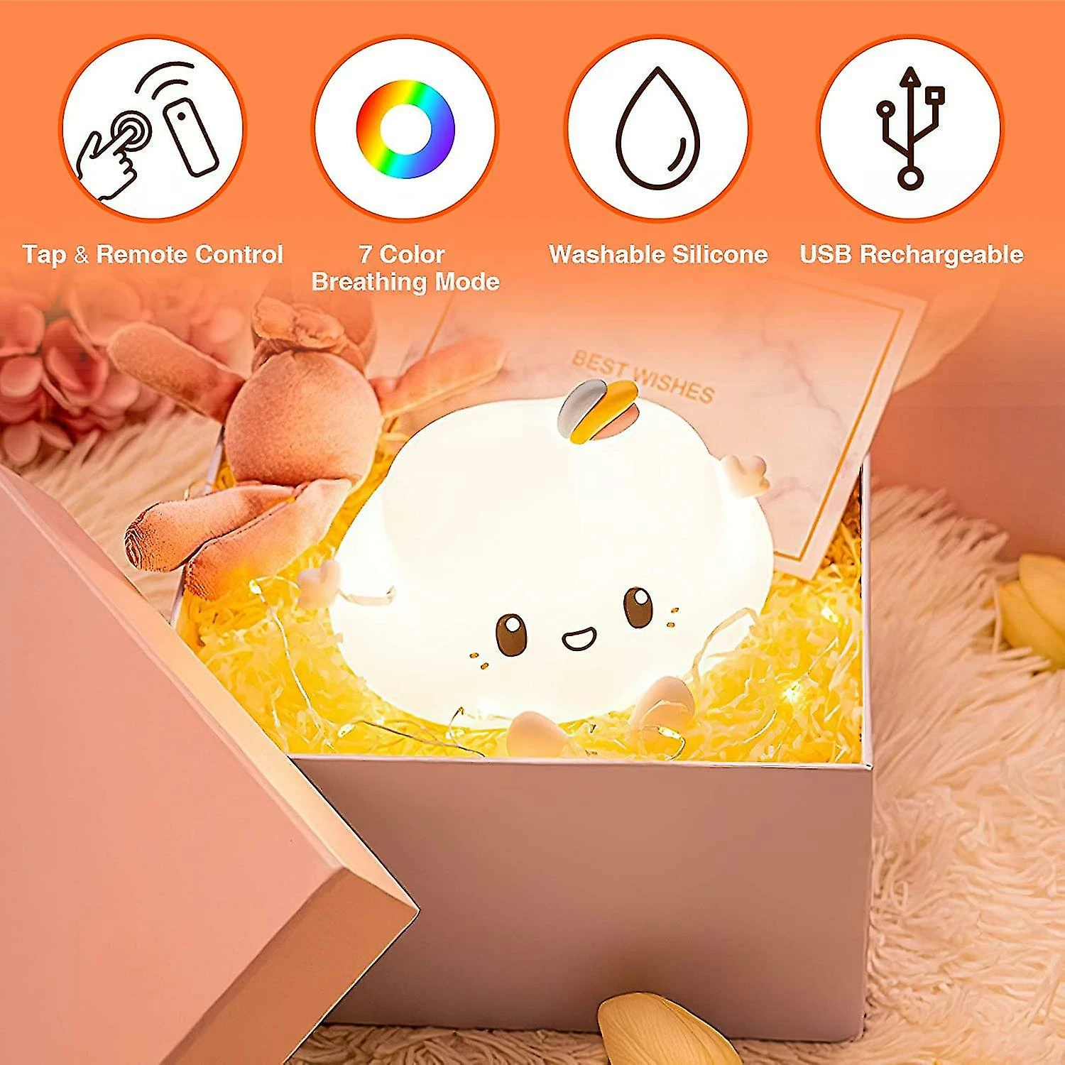 This cute night light is suitable for birthday, Christmas present, baby shower, Saint -Valentine’s Day…You’re sure to see a big, enchanted smile when your little one opens the gift box.