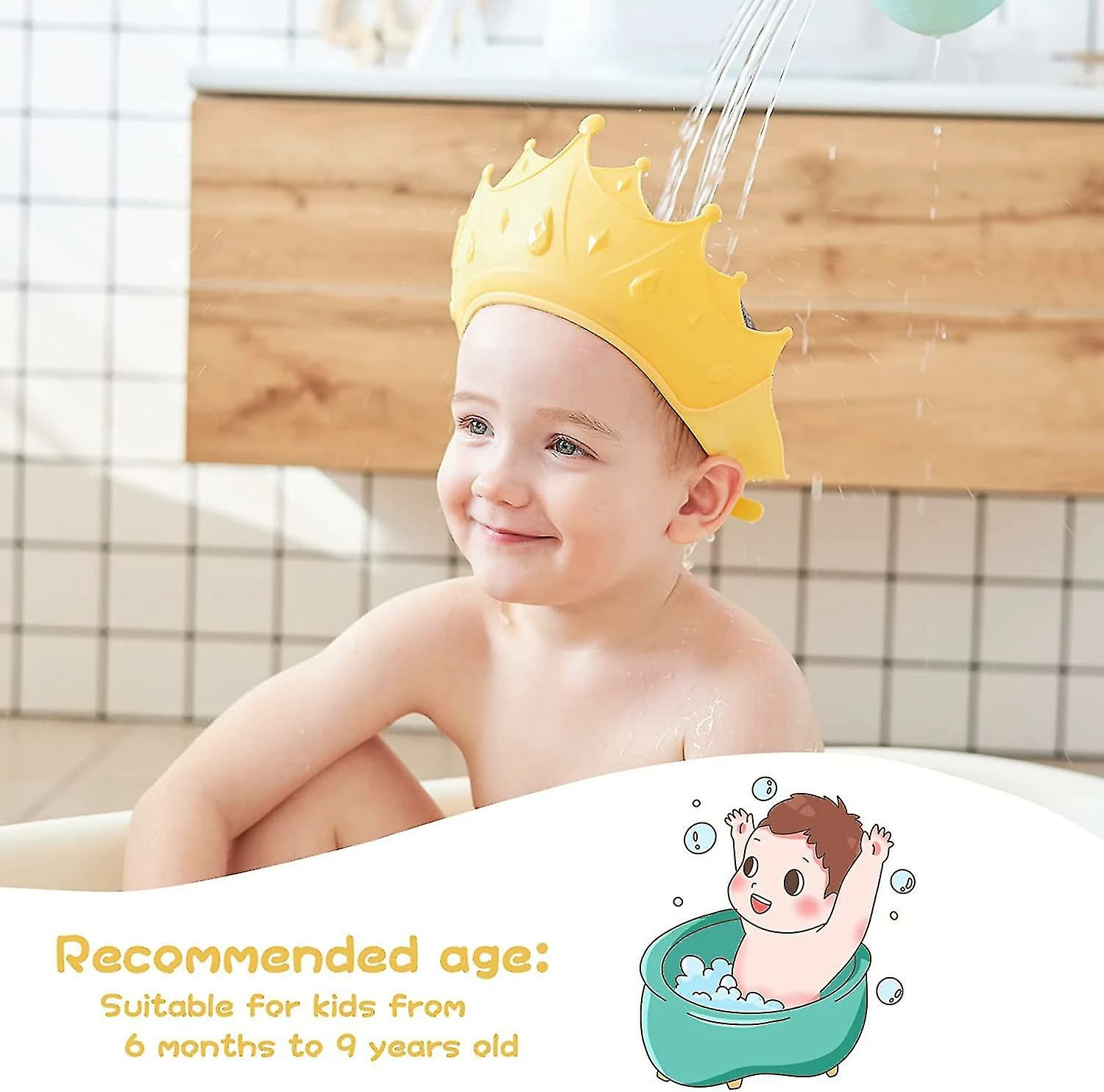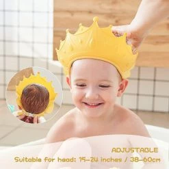 MULTI-PURPOSE 3-in-1 design shampoo shower cap for baby shampoo shield, sun shading, and haircut, useful and helpful for children’s daily life. Crown design can attract baby’s attention and they will love it.
