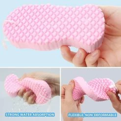 ReusableThis 3D bath sponge is highly absorbent and reusable. The sponge becomes soft after soaking in water, and hardens after air-drying. It will not deform or stink after frequent use. The suspendable lanyard design makes it easy to dry and prevents the sponge from developing mold or bacteria. (We recommend that you rinse thoroughly after each use and hang to dry to keep it clean)