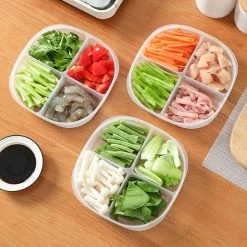 1. Classified Storage: Food storage container includes 4 compartments, classified storage will not cross-infect, easy to organize and clear at a glance.
