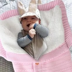 2.Made of Superior acrylic fiber knitting wool:Our swaddle is made of knit wool and fleece, delicate knitting craft, exquisitely crocheted and hemmed, quite durable