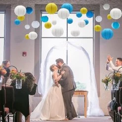 VARIOUS SIZES – Tissue paper lanterns come in 12 inch x3, 10 inch x3, 8 inch x3, 9 pieces in total$FITS ALL OCCASIONS – Perfect for Wedding, birthday, party, baby shower, festival, holiday, celebrations, Graduation, home dcor or crafts. Hanging paper lantern can make excellent backdrop and create a romantic atmosphere$SIMPLE USE DIY – Hanging Lanterns expanding with a metal frame is easy hanging with the C-hook, and allowing you to DIY any patterns you like. Note:The led lights not included$DURABLE AND REUSABLE – Eco-friendly Bright-coloured paper lanterns are made of premium quality tissue paper and metal supports, could easily be put away and used multiple times$MATERIAL – Tissue paper, adding a pop of color and brightness to your outdoor/indoor party